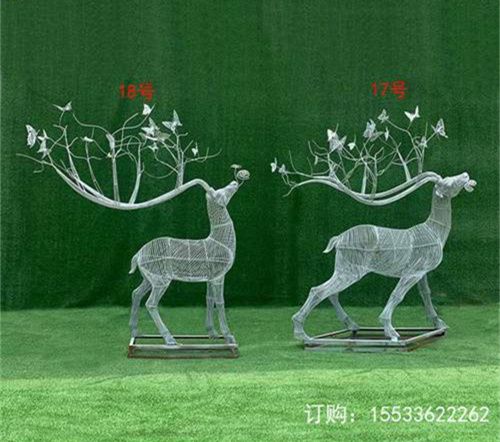 不锈钢镂空动物鹿雕塑公园摆件