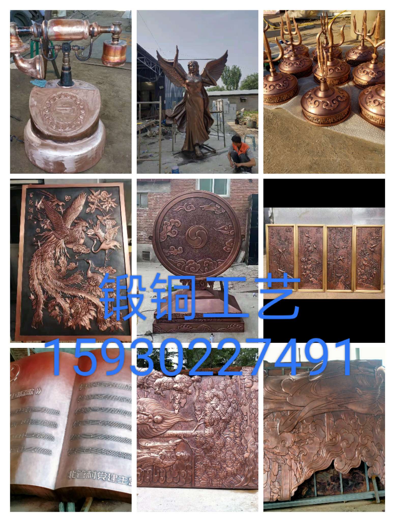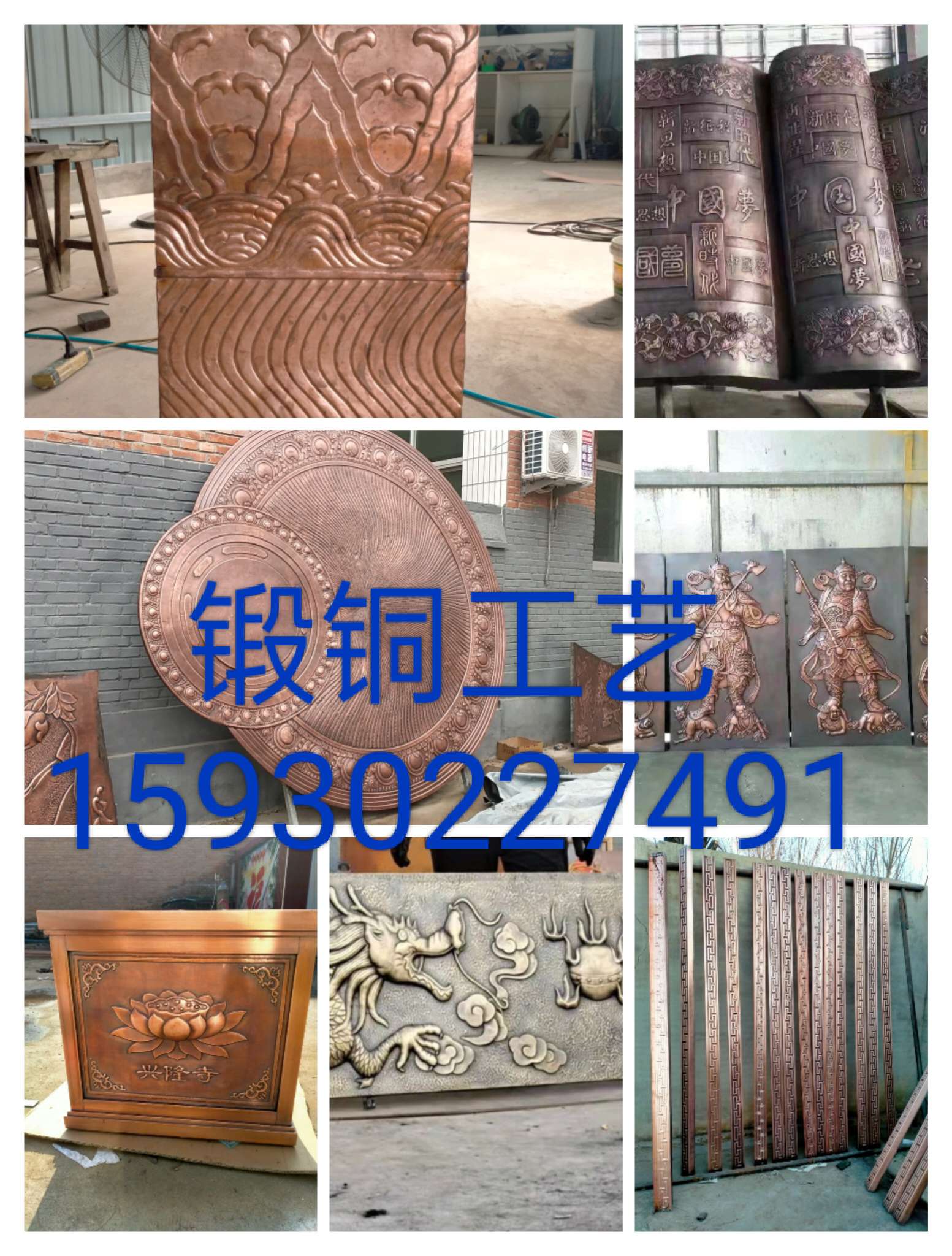 我厂专业制作锻造各种铜浮雕,铜壁画,铜牌匾,铜门花件,铜字,铜屏风,铜地雕,城市铜雕塑.校园文化铜装饰,公园广场铜装饰,寺庙铜装饰等铜工艺,如果有这方面的工程需要报价和制作的随时联系。详情咨询15930227491、微信同步